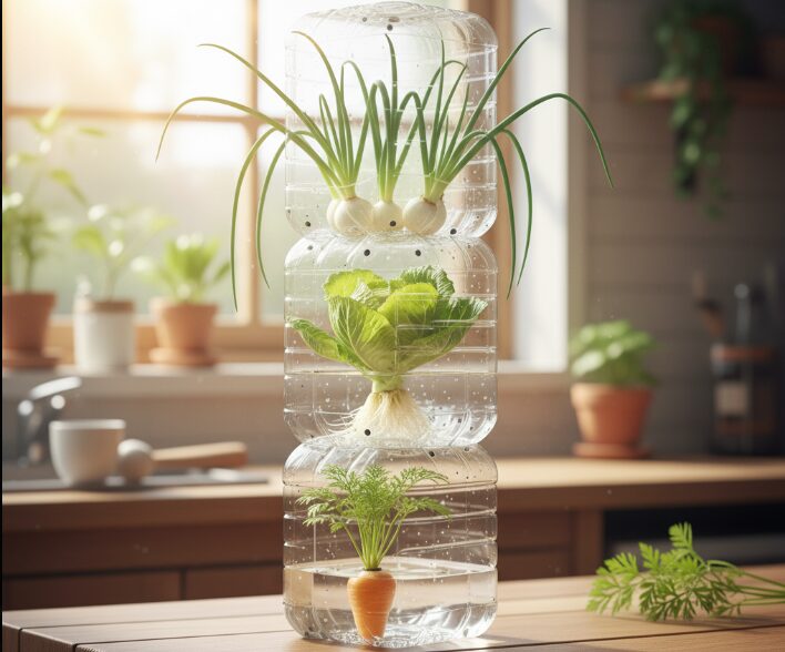 キャベツのリボベジが成功して、「もっと色々な種類のリボベジを試したいけど、置く場所がない…」と感じ始めたら、次なるステップとして「ペットボトルタワー」に挑戦してみてはいかがでしょうか。