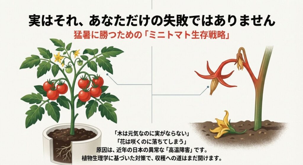 植物生理学の視点を交えながら、暑さでミニトマトの実がつかない本当の原因と、