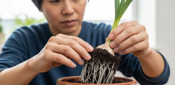 水耕栽培である程度育てたにんにくを、さらに大きくしたり、球根を本格的に増やしたりしたい場合、途中で土のプランターへ移植するというハイブリッドな方法があります。