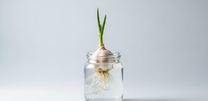 にんにくを水につけると、休眠していた生命が目を覚まし、力強い成長を始めます。