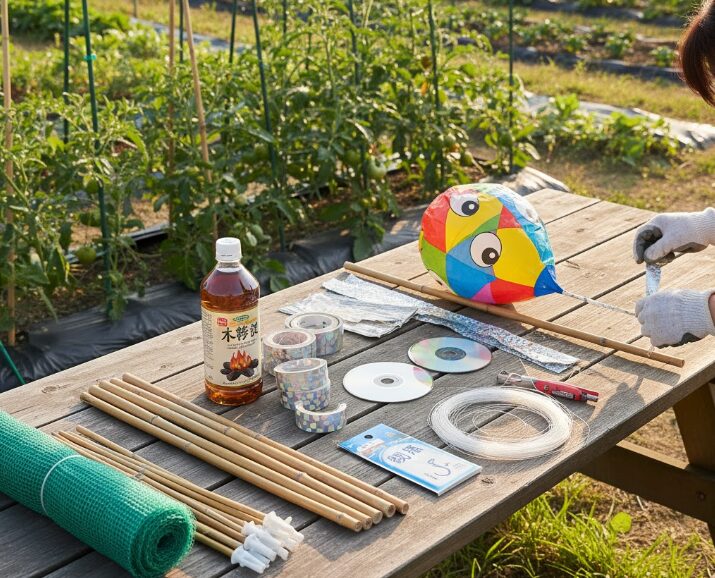 そして、物理防御が難しい場合や、補助的な対策として、CDの「光」、目玉の「威嚇」、木酢液の「ニオイ」、